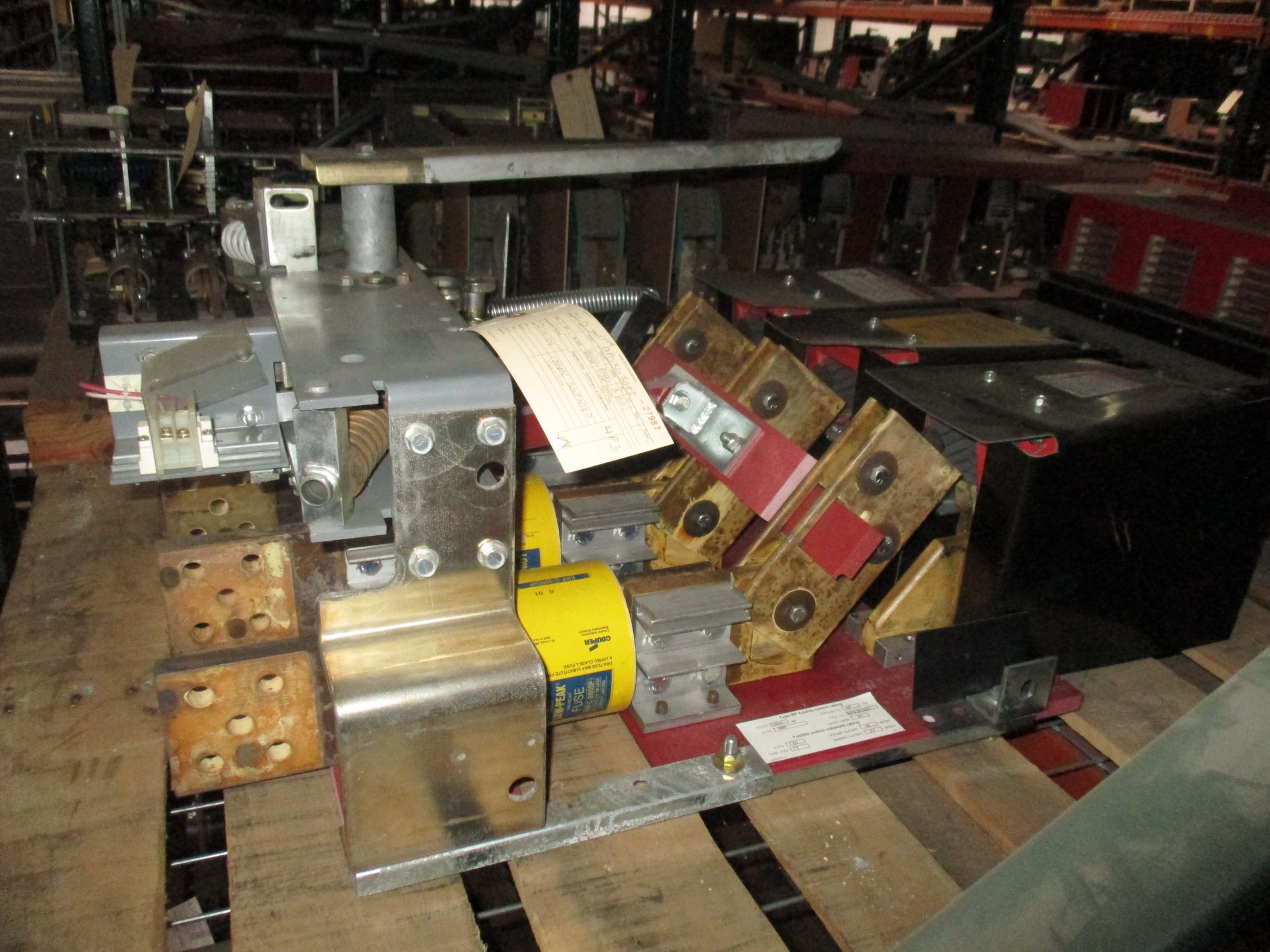 Square D BP03630EI Pressure Contact Switch; 3000 amp, 600 volt, 3 pole, red back plate, 120 volt shunt trip. Sold used electrically OK. Fuses sold separately.