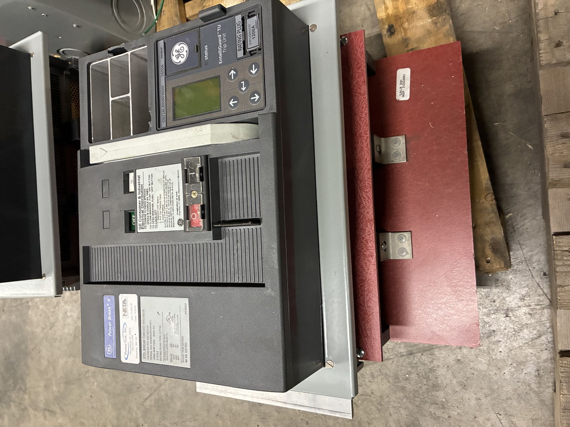 General Electric Power Break II SSF16G216 Circuit Breaker; 1600 amp, 600 volt AC, 3 pole, manually operated (M/O), fixed-mount (F/M). Used tested with report.