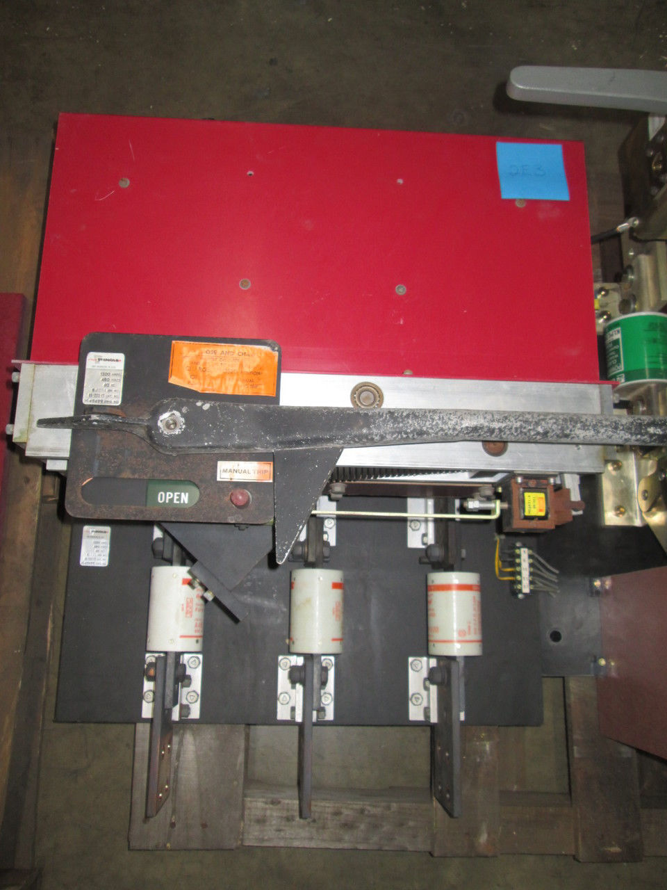 Pringle QA-1233-ET Pressure Contact Switch: 1200 amp, 480 volt, 3 pole, black back plate, 120 volt shunt trip. Sold used electrically OK. Fuses sold separately.