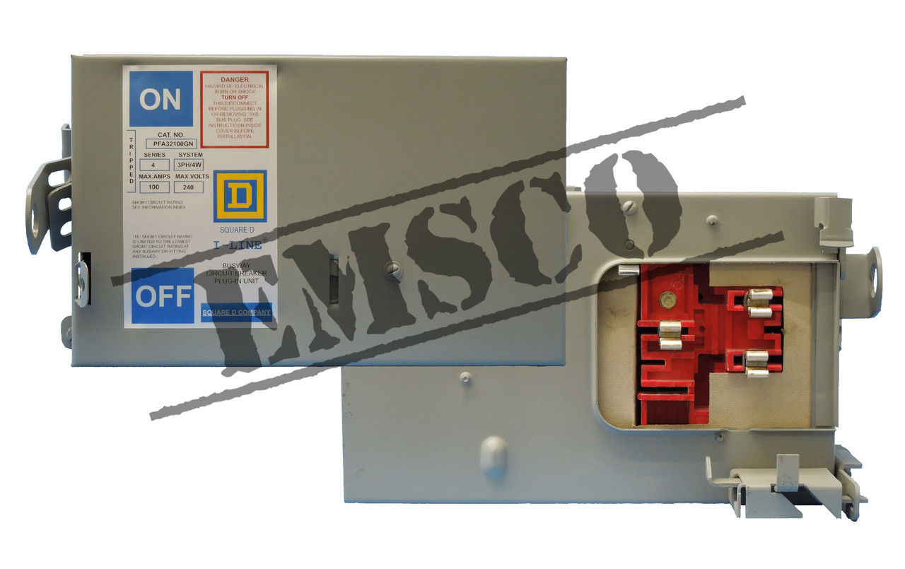 Schneider Electric/ Square D PFA100 I-Line breaker style bus plug; 100 amp, 600 volt, three-wire. Reconditioned and guaranteed with a one year warranty.