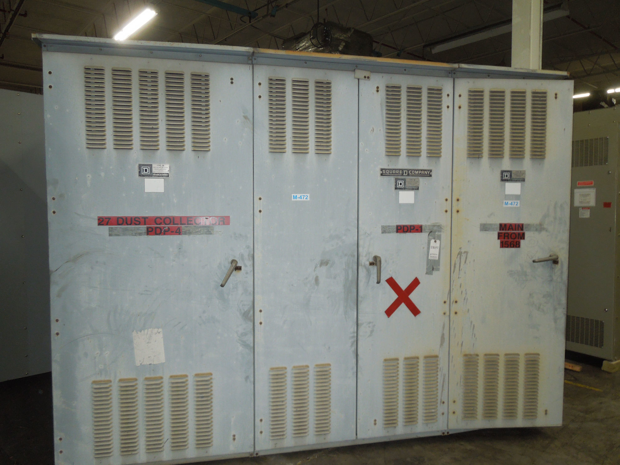 Square D Power Style Switchboard; 2000 amp fusible main switch- cat # BP03620I, 480 volt AC, three pole, three phase, three wire, NEMA 3R outdoor. With (2) sections of QMB fusible switch panels. Reconditioned & guaranteed with a one-year warranty.