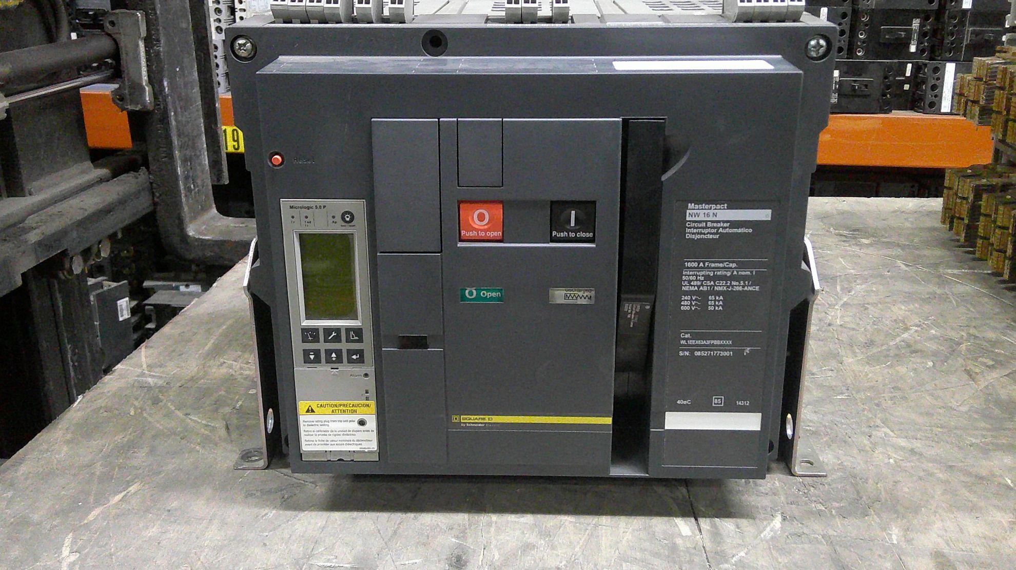 Square D MasterPact NW16H Circuit Breaker; cat # WL1EEX63A3FPBBXXXX, 1600 amp, 600 volt AC, 3 pole, manually operated (M/O), fixed-mount (F/M). With micrologic 5.0 P trip unit with LSI functions. Used tested with report. **Missing Stabs
