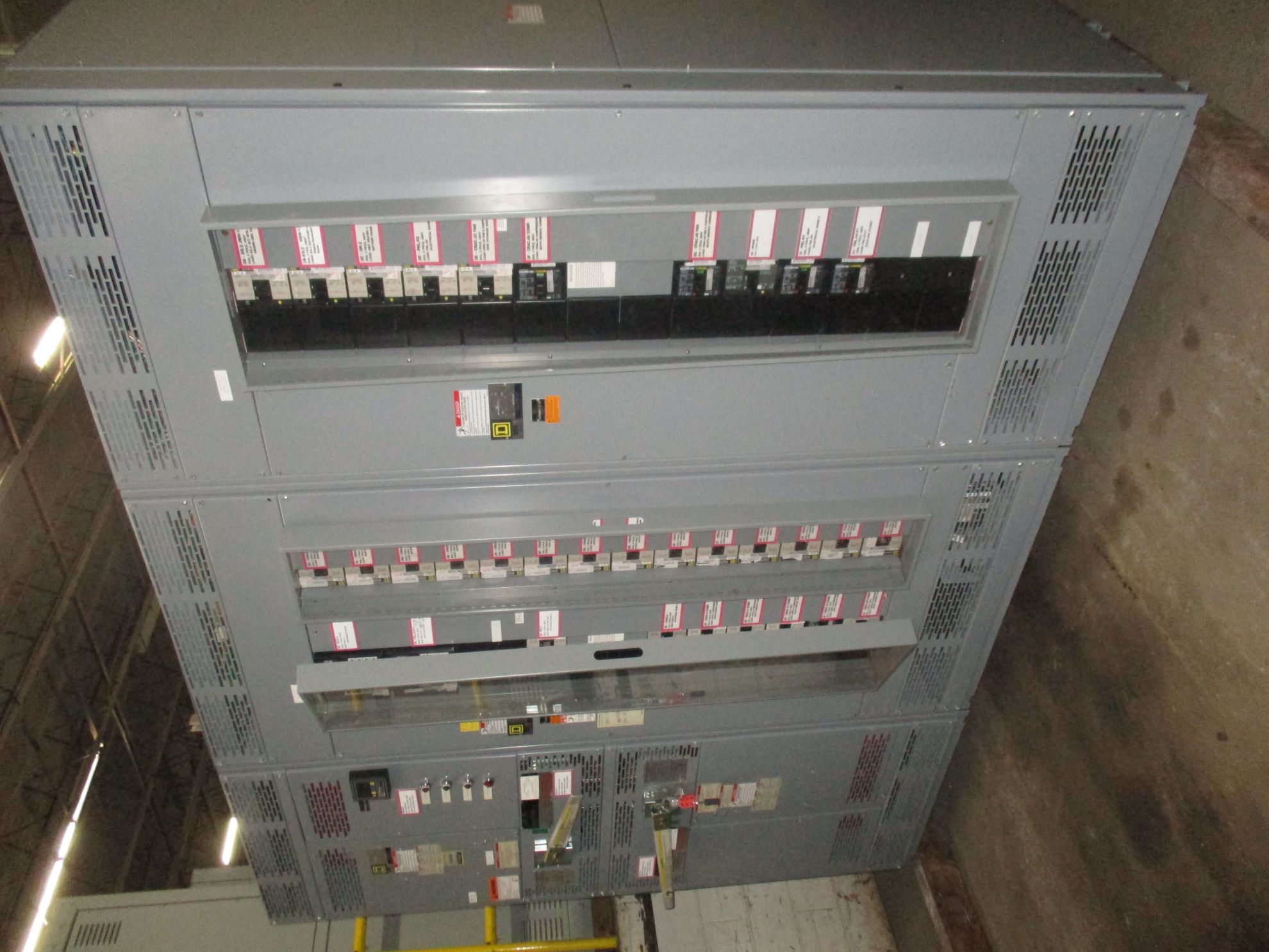 Square D QED Power Style Switchboard; 1200 amp fusible dual mains- cat # BP03612, 480 volt, 3 phase, 3 wire, ground fault, NEMA 1 indoor rated. With (2) sections of I-line breaker distribution panels. Reconditioned & guaranteed with a one-year warranty.