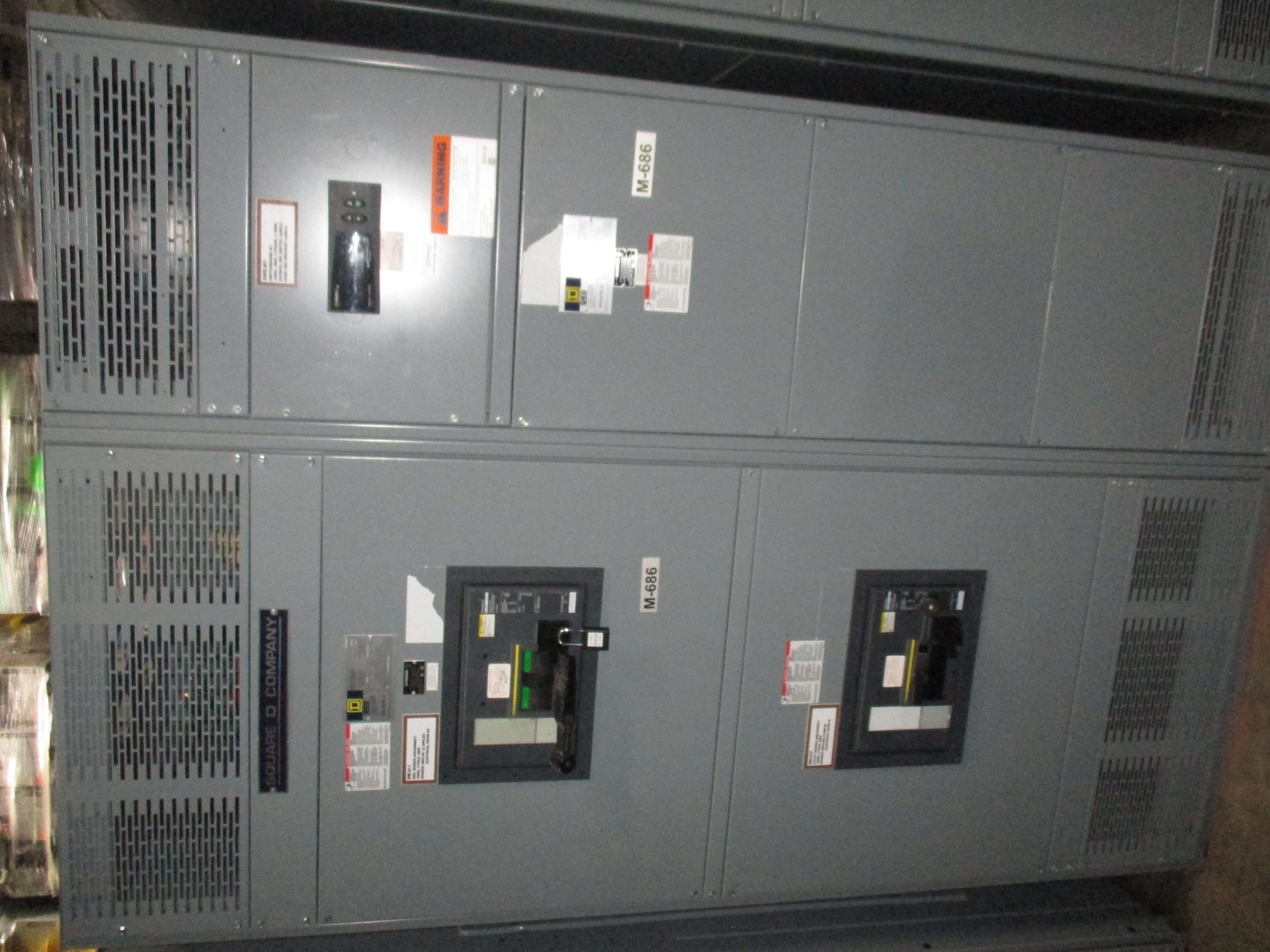 Square D QED Power Style Switchboard; 1600 amp, main lug only, 480 volt, 3 phase, 3 wire, NEMA 1 indoor rated. With (2) RL 1600 amp distribution breakers. Reconditioned & guaranteed with a one-year warranty.