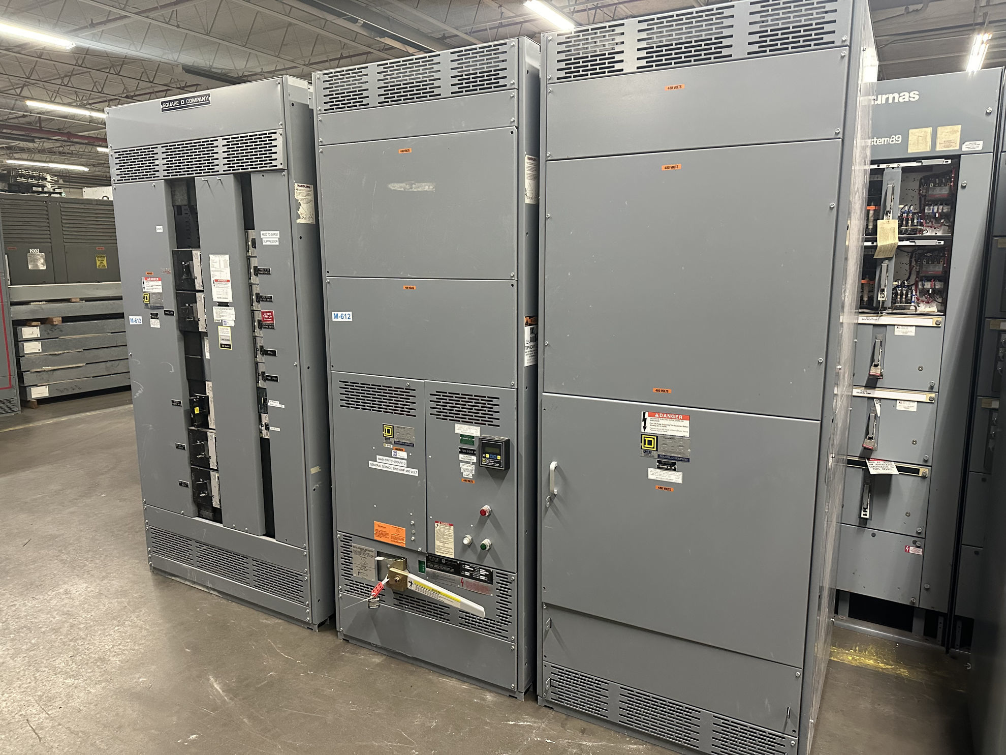 Square D QED Power Style Switchboard; 2000 amp fusible main switch- cat # BPO3620E, 480Y/277 volt, 3 phase, 4 wire, ground fault, NEMA 1 indoor rated. With Pull Panel & (1) I-line breaker distribution panel. Reconditioned & guaranteed with a one-year warranty.