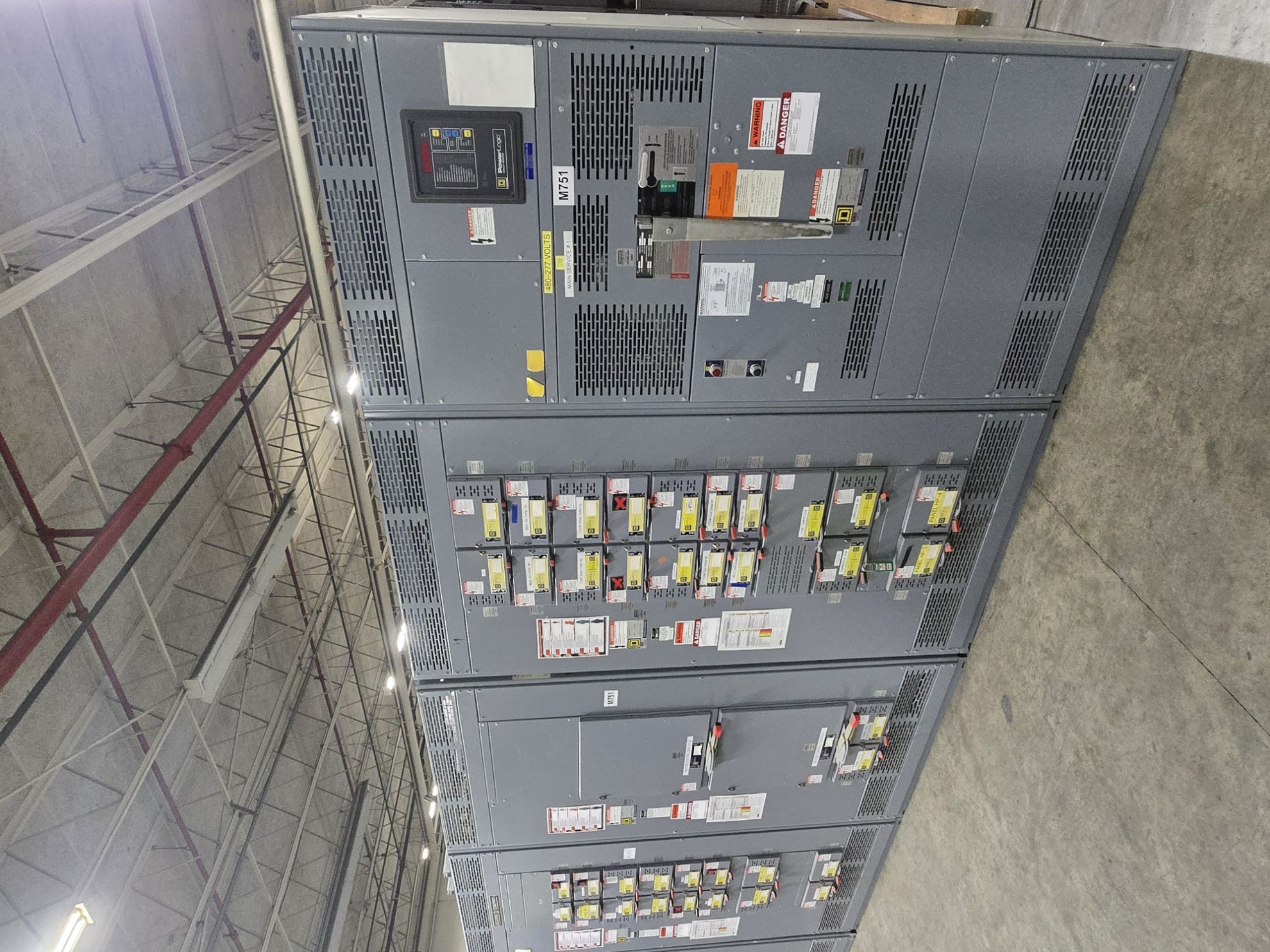Square D QED Power Style Switchboard; 3000 amp fusible main switch- cat # BPO3630EI, 480Y/277 volt, 3 phase, 4 wire, ground fault indicator, NEMA 1 indoor rated. With (3) sections of QMJ/QMBW fusible distribution panels. Reconditioned & guaranteed with a one-year warranty.